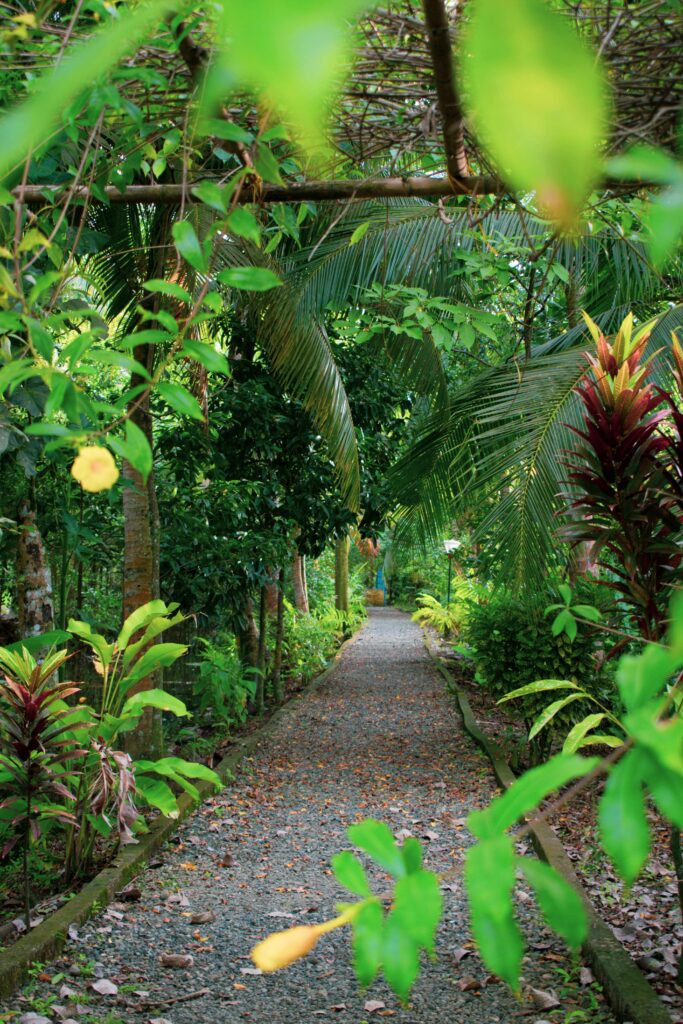 Un jardín vivo entre el bosque y el mar. En Simona del Mar florecen heliconias, mangles, orquídeas y árboles nativos que transformaron un terreno degradado en un ecosistema lleno de vida.
